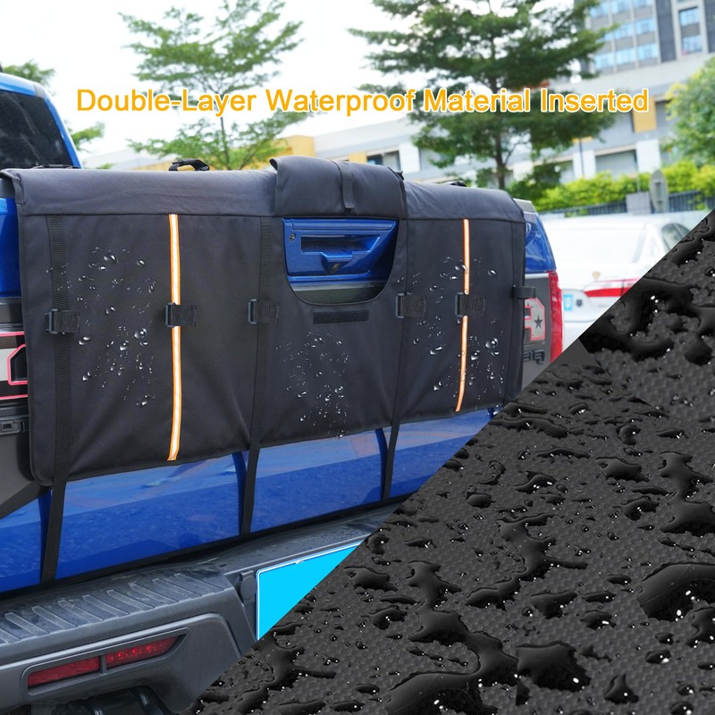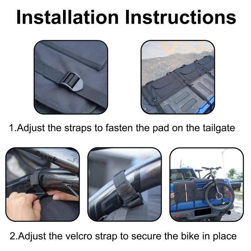 Amooca Tailgate Pad for Mountain Bikes Pickup Truck Tailgate Protection Pad with 3 Tool Pockets 52'' Wide for 5 Bicycles
