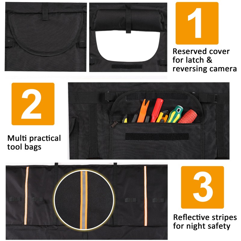 Amooca Tailgate Pad for Mountain Bikes Pickup Truck Tailgate Protection Pad with 3 Tool Pockets 52'' Wide for 5 Bicycles