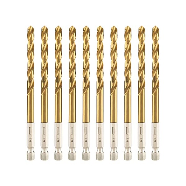 amoolo 1/4" Hex Shank Drill Bits (10Pcs), Premium 4341 HSS Titanium Impact Hex Drill Bits for Wood, Steel, Metal, Plastic, Quick Change Design