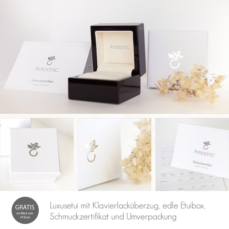 - At Amoonìc you will receive unique jewellery made especially for you. All gemstones used are conflict free and come with a gemstone certificate issued by a state certified gemologist. All stones are precisely handmade. Our designer jewellery is produced in Germany in precise quality work for you and is nickel-free (without nickel). The piece of jewellery will be sent to you in a high-quality case.