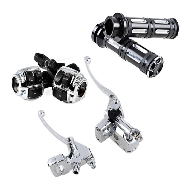 AMOPA Horn Turn Signal Head Light Switch with Harness Hydraulic Brake Master Cylinder Clutch Levers and Hand Grips Compatible with 1996-2012 Harley 1" Handlebar Softail Dyna Sportster V-Rod (Chrome)