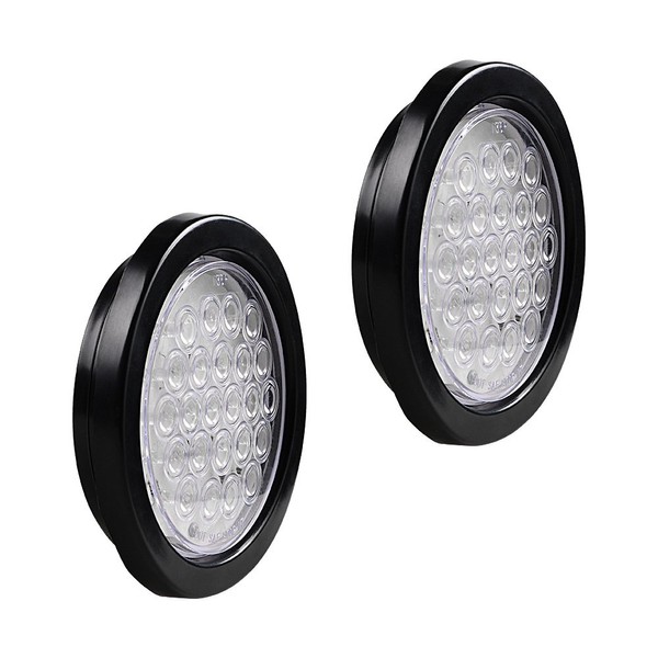 AMOPACORP For RV Trailer Truck SUV Sedan Combo 2pcs 4" White Round 24 Diodes LED Trailer Tail Reverse Back-up Brake Stop Turn Signal Brake Marker Clearance Light