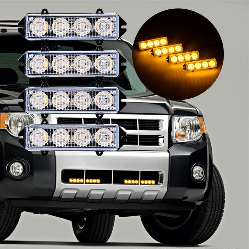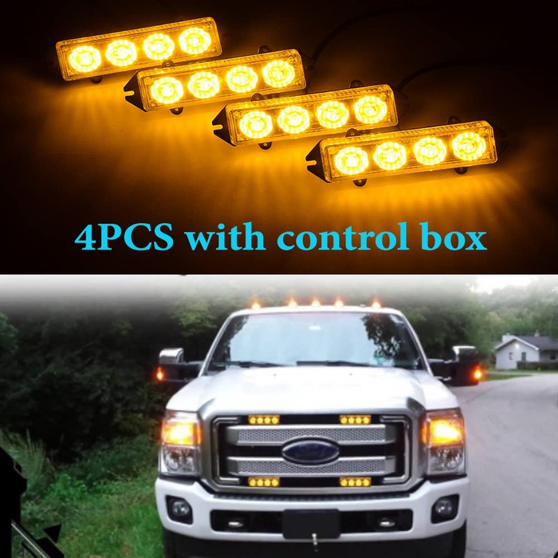 • Package contains: 4X 4-LED Amber Strobe Light + 1X Wiring with On/Off + Pattern Switch + 4X Mounting Wires + 1X Control Box + Set of Mounting Accessories