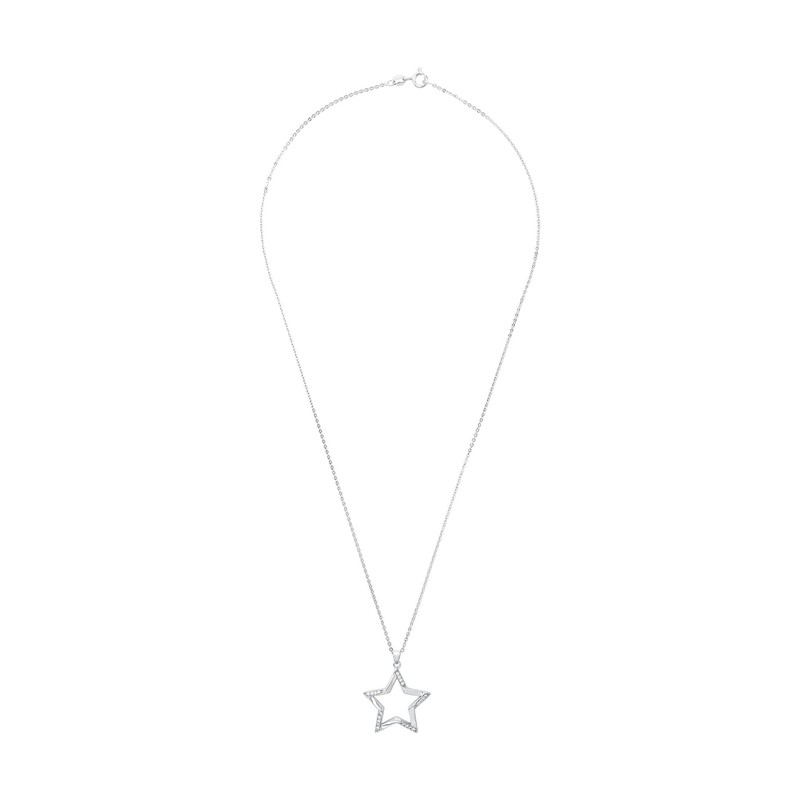 Amor 2022069 Women's Necklace with Pendant 925 Sterling Silver with Synthetic Zirconia 50 cm Silver Star Comes in Jewellery Gift Box, Sterling Silver, Synthetic zirconia.
