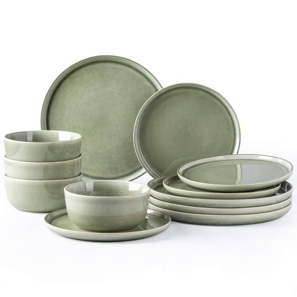 AmorArc Stoneware Dinnerware Sets for 4,Round Reactive Glaze Ceramic Plates and Bowls Set,Highly Chip and Crack Resistant | Dishwasher & Microwave Safe Dishes Set,Service for 4 (12pc)