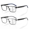 Amorays 2 Pack Gleitsichtbrille Progressive Multifokus Lesebrille Herren Metall Anti-Blaulicht Lesebrillen mit Federscharniere 8003(Schwarz&GrauïŒ+2.00