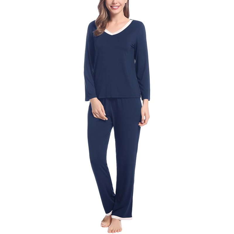 • 【Style】: Long pyjamas set featured moisture wicking. You can wear it around the house all day with no sweat. Pant with soft drawstring elastic waist fits for any body size, this casual long pajama pants make relaxing as comfortable as possible