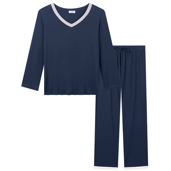 Amorbella Womens Bamboo Pyjamas Set Cooling Pajamas Winter Moisture Wicking Pjs(Navy Blue, Small)