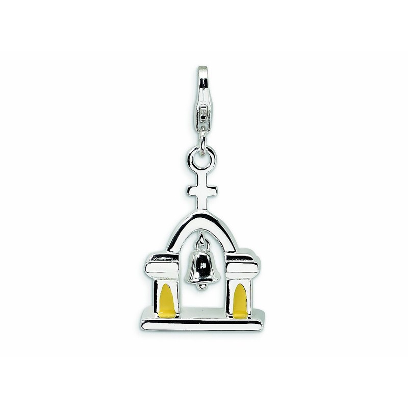 Amore LaVita Sterling Silver Enameled Church Bell Lobster Clasp Charm (Moveable) for Charm Bracelet