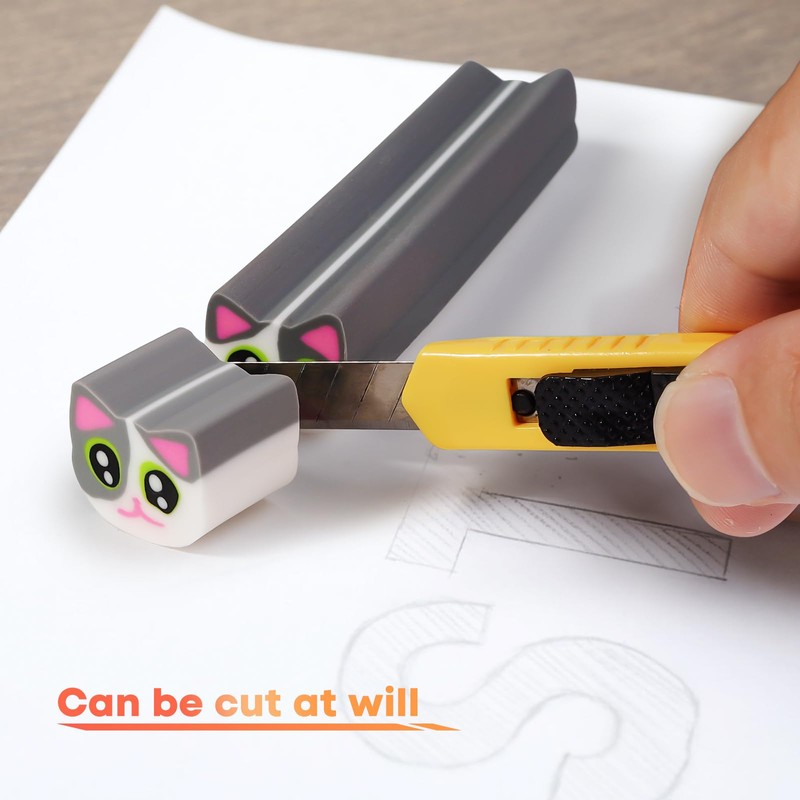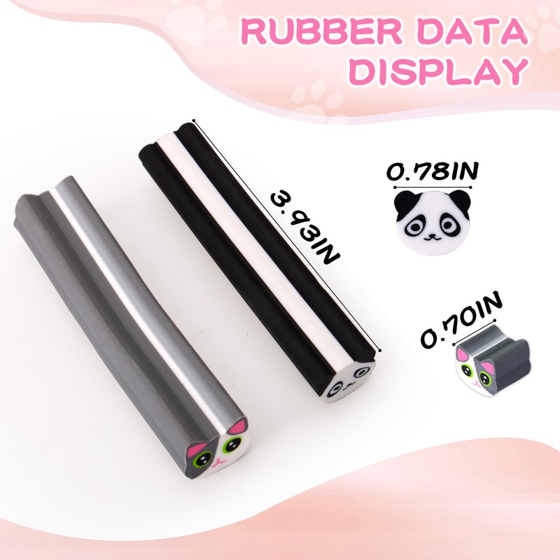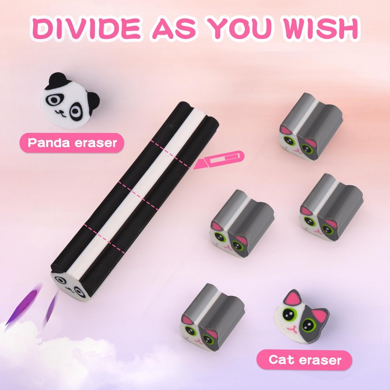 AmoreAngel Crafts 2 Pcs Cute Pencil Erasers, Cute Cat Panda Shaped Eraser Bars, Can Be Divided into Small Erasers , for Classroom, Sketching, Office Use