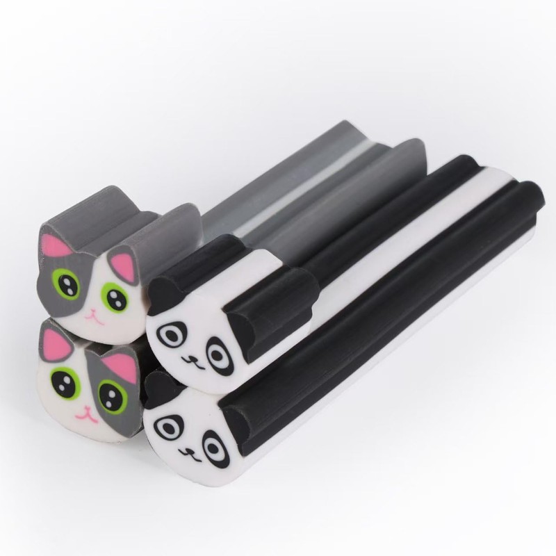 - Two-piece eraser set, panda and cat designs