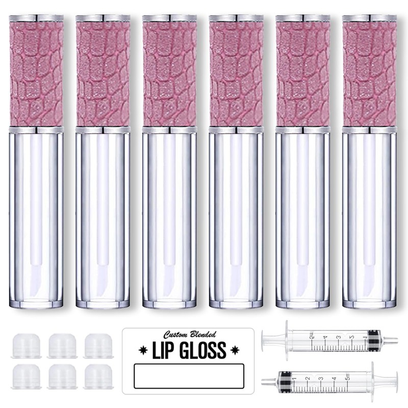 AMORIX 6pcs Lip Gloss Tubes with Wand 5ml Empty Lip Gloss Containers Purple Lipgloss Bottles Crystal Lip Supplies Kit with Syringe for DIY Lipgloss Base
