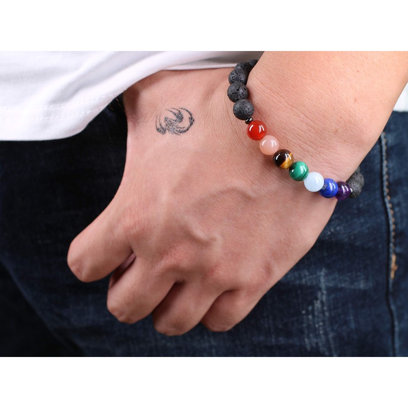 AmorWing 7 Chakra Bracelet Stone Beaded Bracelet, Lava Bracelet Crystal Bracelet