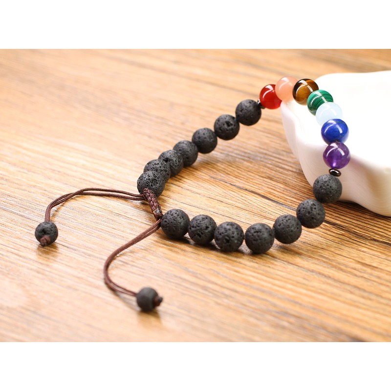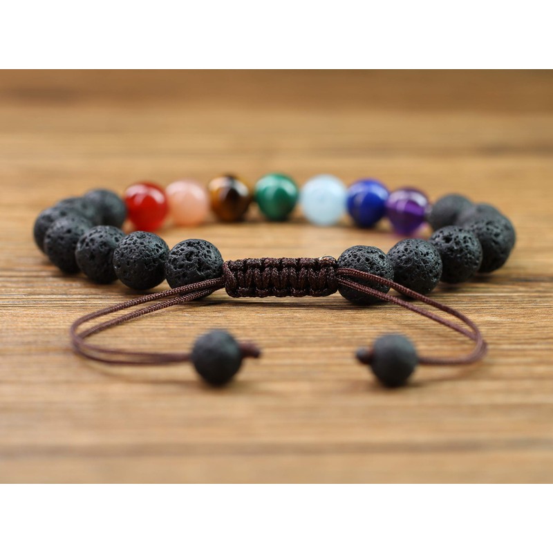 - This beaded bracelet is beaded with 8mm 7 Chakra(Red agate, Sunstone, Brown tiger eye, Malachite, Aquamarine, Lapis lazuli, Amethyst), Lava stone beads