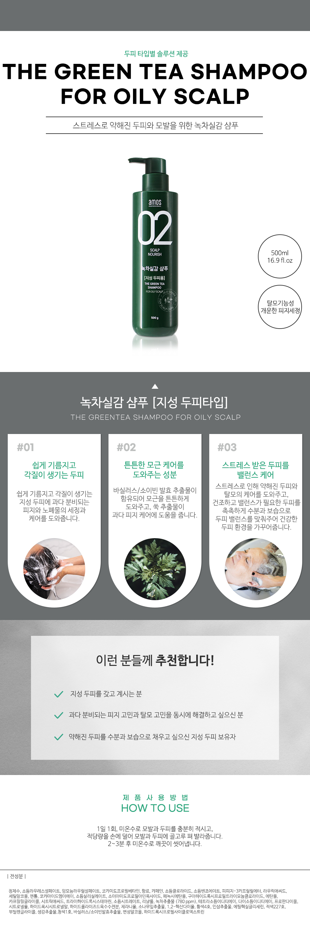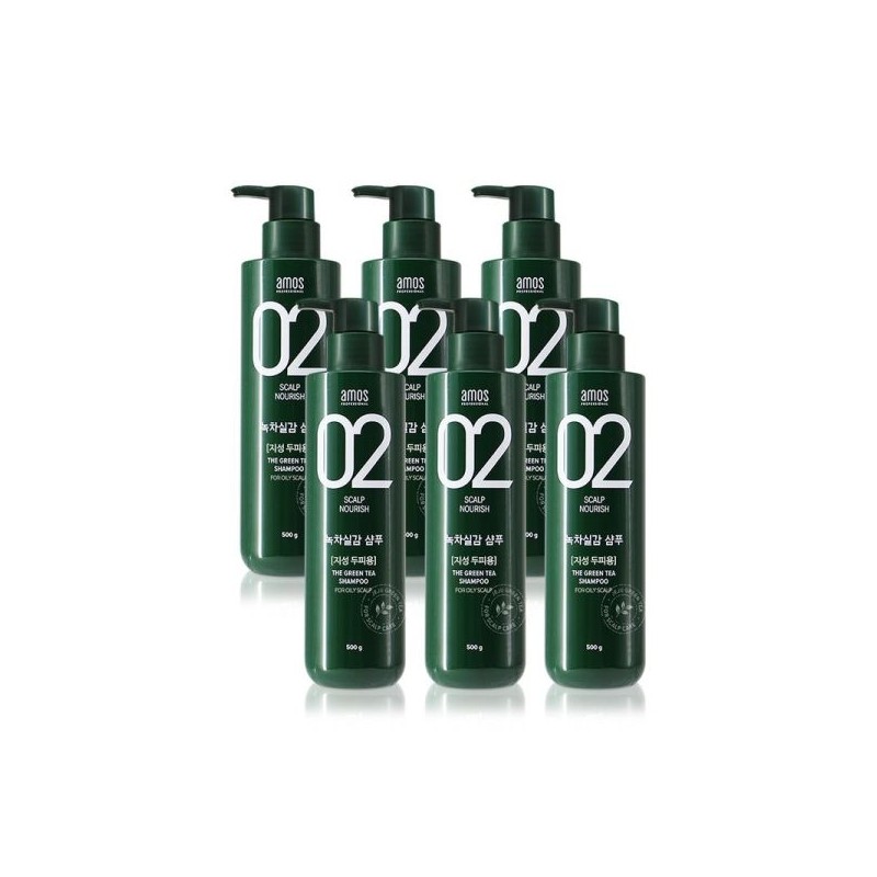 아모스 녹차실감 샴푸 지성용 500g (산뜻한타입) 6개 (C)