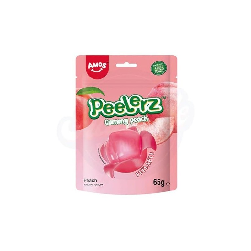 Amoss Peelerz Peelable Gummy Fruits Natural Flavoured Sweets Candy Resealable 65g (Peach)