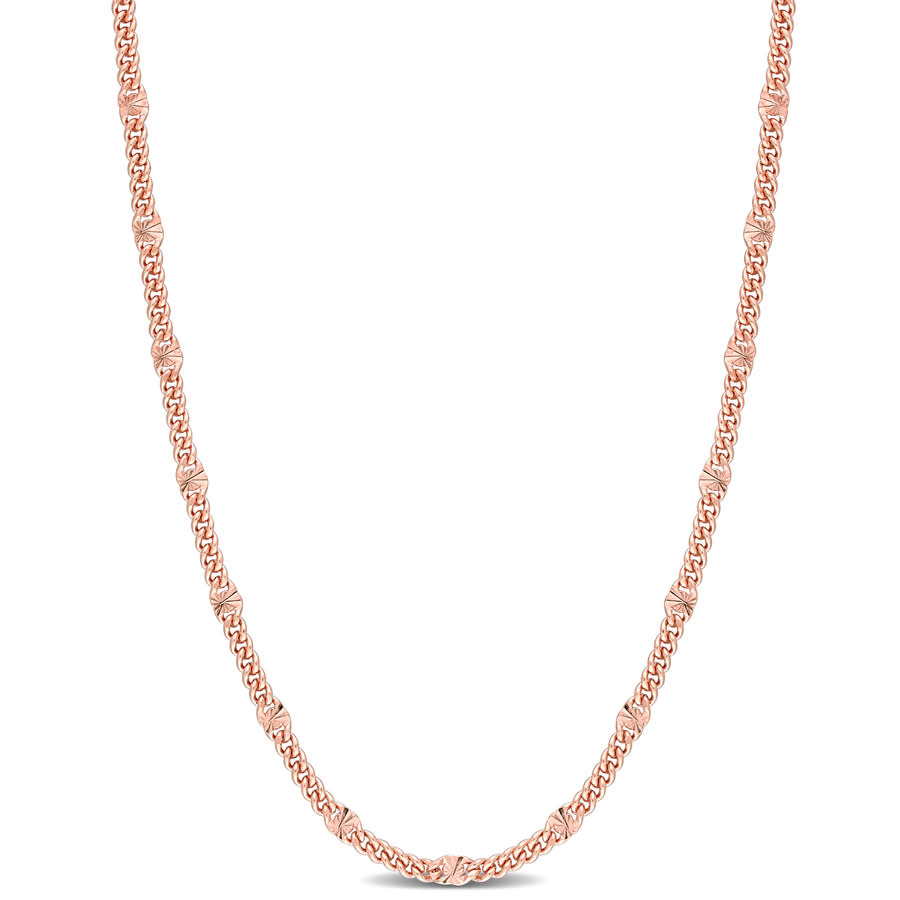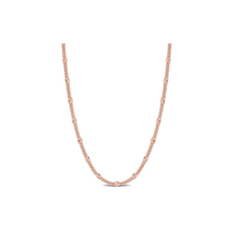 Look supremely elegant and flaunt it all with this captivating Curb Link Unisex Necklace. Mounted in shimmering rose gold plated sterling silver, this impeccable 24-inch necklace features beads placed at regular intervals on the curb chain which is securely and comfortably fastened with a lobster clasp. Enhanced with a high polished finish and made in Italy, this sumptuous necklace will surely make you fall in love with yourself. W: 2.6g.
