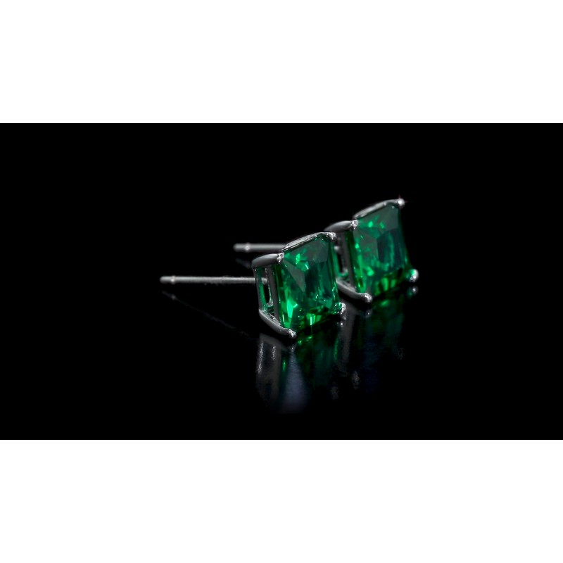 Amour Sterling Silver 4 1/5CT TGW Square-cut Green Cubic Zirconia Stud Earrings