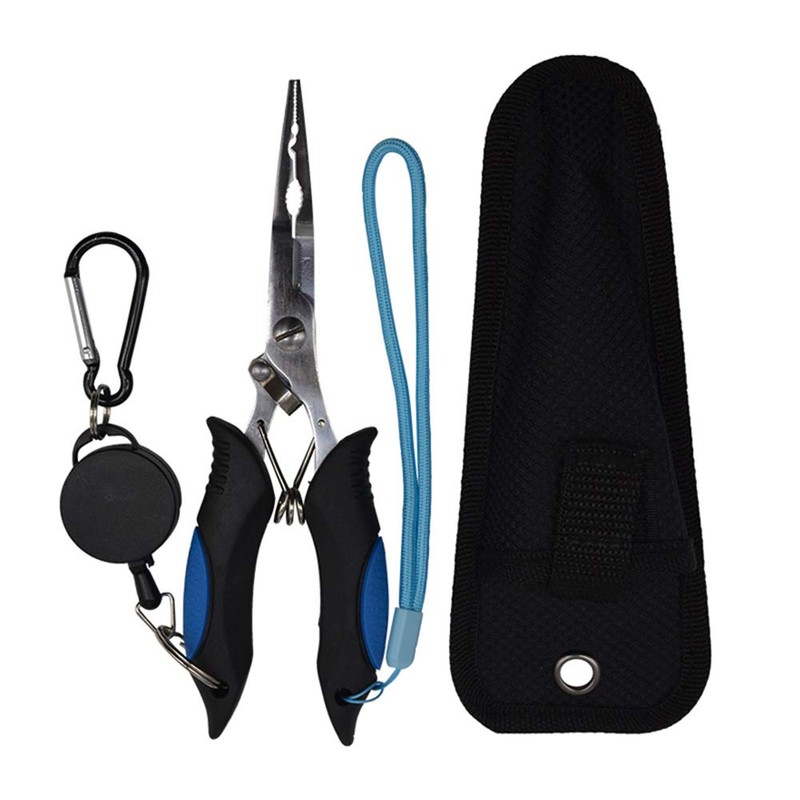 Amoygoog Stainless Steel Fishing Pliers - Needle Nose Plier for Cutting Fishing Line, Multitool Pliers with Sheath and Telescopic Lanyard | Fishing Tools | Amoygoog