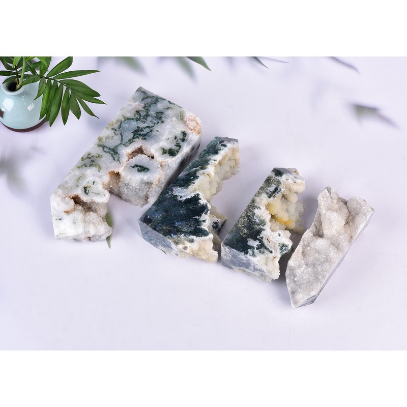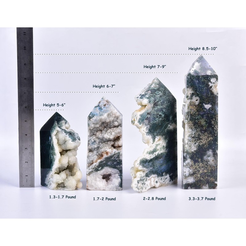 AMOYSTONE Natural Crystal Stone Tower Moss Agate Gemstone Slab Obelisk 0.8-1.3 LBS, Healing Reiki Chakra Meditation Therapy Crystal Grid