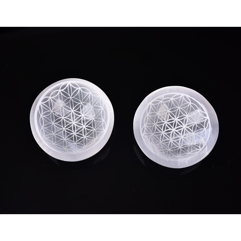 AMOYSTONE Round Selenite Charging Bowl for Crystals Stones 4” Engraving Pattern Flower of Life 1, Home Decors, Healing