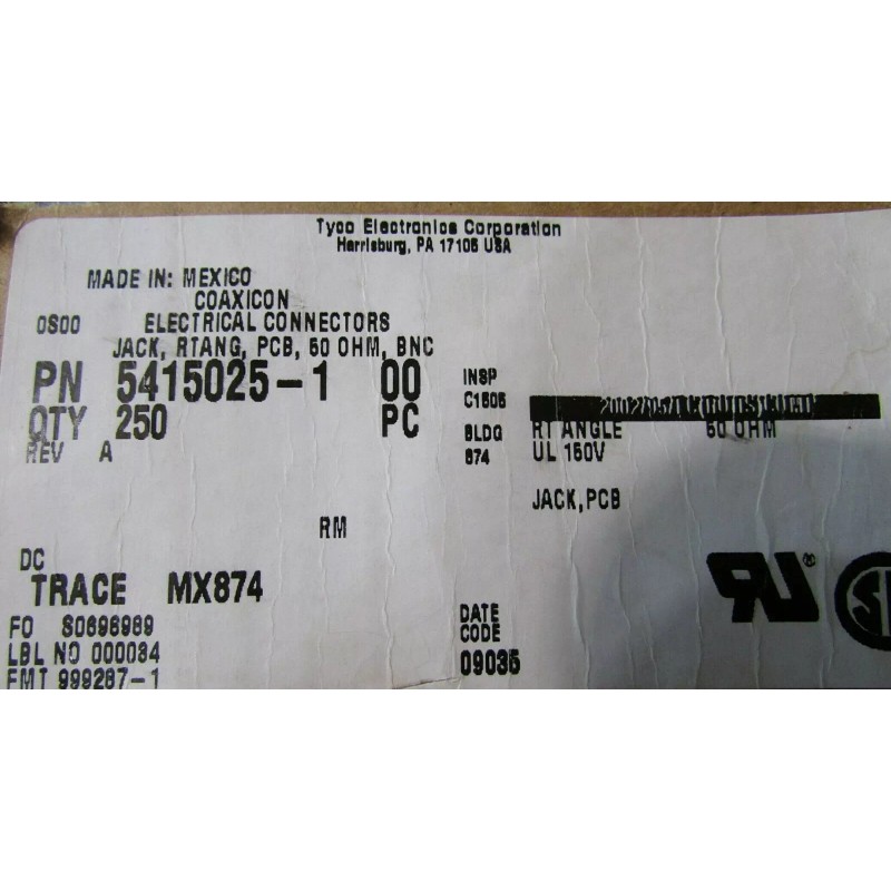 New Tyco / Amp BNC Connector Jacks, Female Socket 50 Ohm, RTang PCB Mount, Thru Hole Right Angle, Part Number 5415025-1. Each bid quantity is for a Lot of Two (2) Pieces. You may bid / buy any number of lots, up to the total quantity available above.
