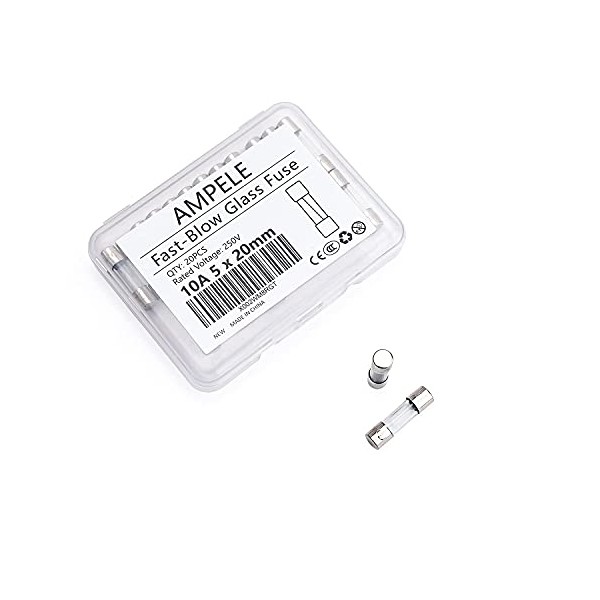 AMPELE (Pack of 20) 10A Fast-Blow Fuse 10Amp 250V Glass Fuses 0.2 x 0.78 inch/5 x 20 mm (10Amp)(F10AL)