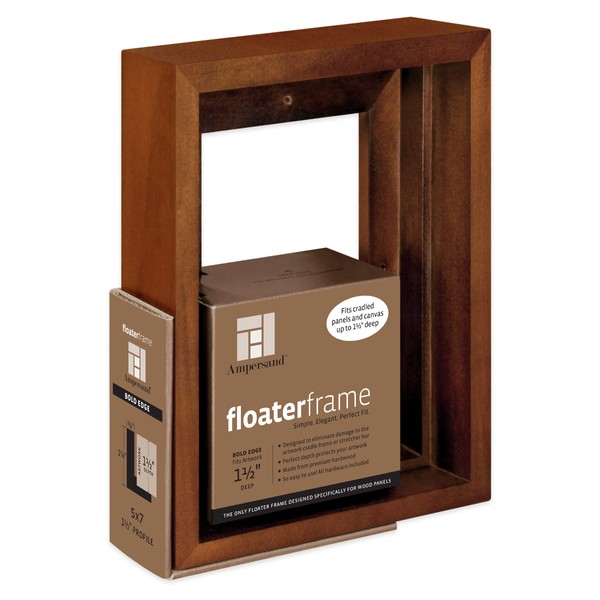 Ampersand Art Supply Floaterframe Readymade Frame for Flat and 1 1/2" Deep Wood Panel and Canvas Artwork, Paintings, Prints, and More, 5"x7", Walnut Bold