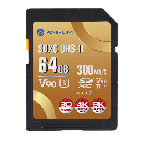 Amplim 64GB V90 UHS-II SD SDXC Card, 300MB/S 2000X Read/Write Lightning Speed...