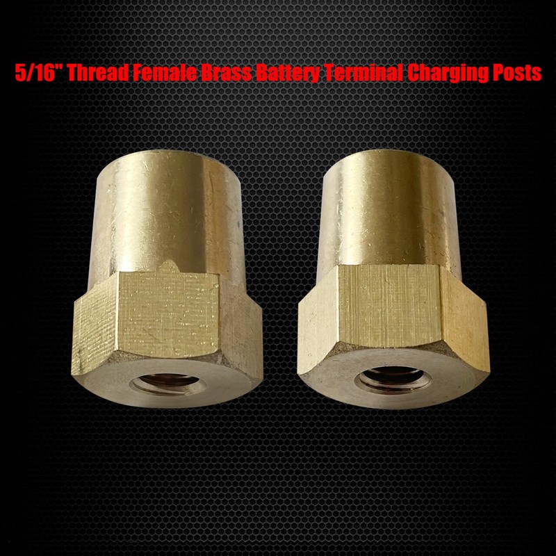 Ampper 5/16"-18 Thread Female Brass Battery Terminal Post Adapter Battery Terminal Charging Posts for 5/16"-18 Stud Extension, Pack of 2