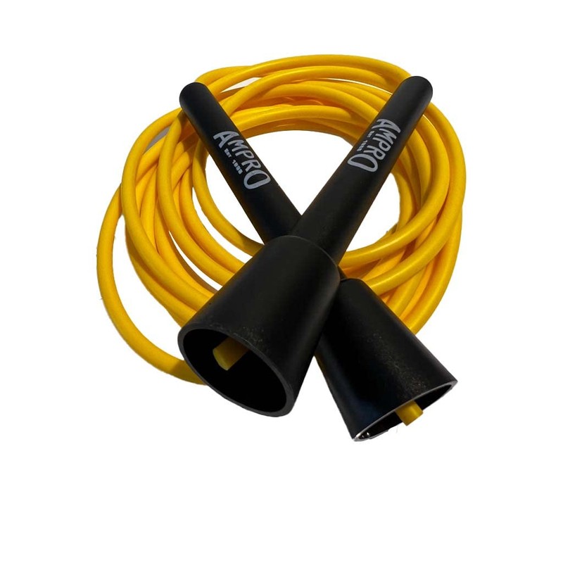 Ampro Zoom Adjustable Speed Skipping Rope 11ft - Jump Rope - Skip - Skill - Training - Exercise (Black/Yellow)