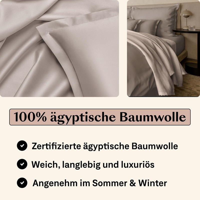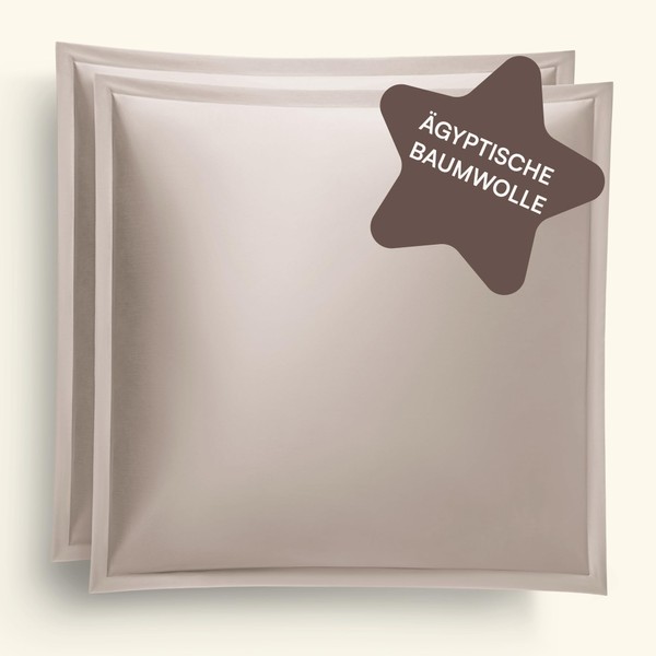 - LUXURIOUS PILLOW COVER SET MADE FROM 100% EGYPTIAN COTTON: This high-quality, 2-piece pillowcase set 80 x 80 cm (colour: taupe) offers an incredibly soft, comfortable and breathable sleeping experience. The concealed zip not only provides an elegant, seamless appearance, but also increases comfort and ease of use. The bridge on the pillowcase provides extra comfort and provides a luxurious sleeping experience