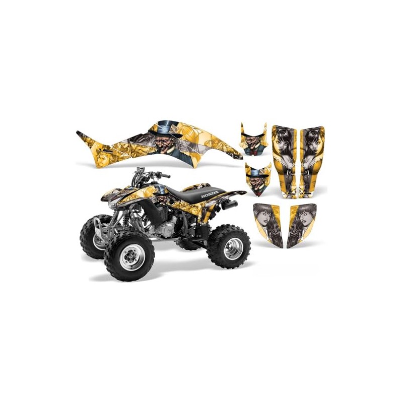 AMR Racing ATV Graphics Kit: Quad Stickers for Honda TRX 400EX (1999-2007), Featuring MadHatter Design in Yellow & Silver, Transform Your Ride with New ATV Stickers!