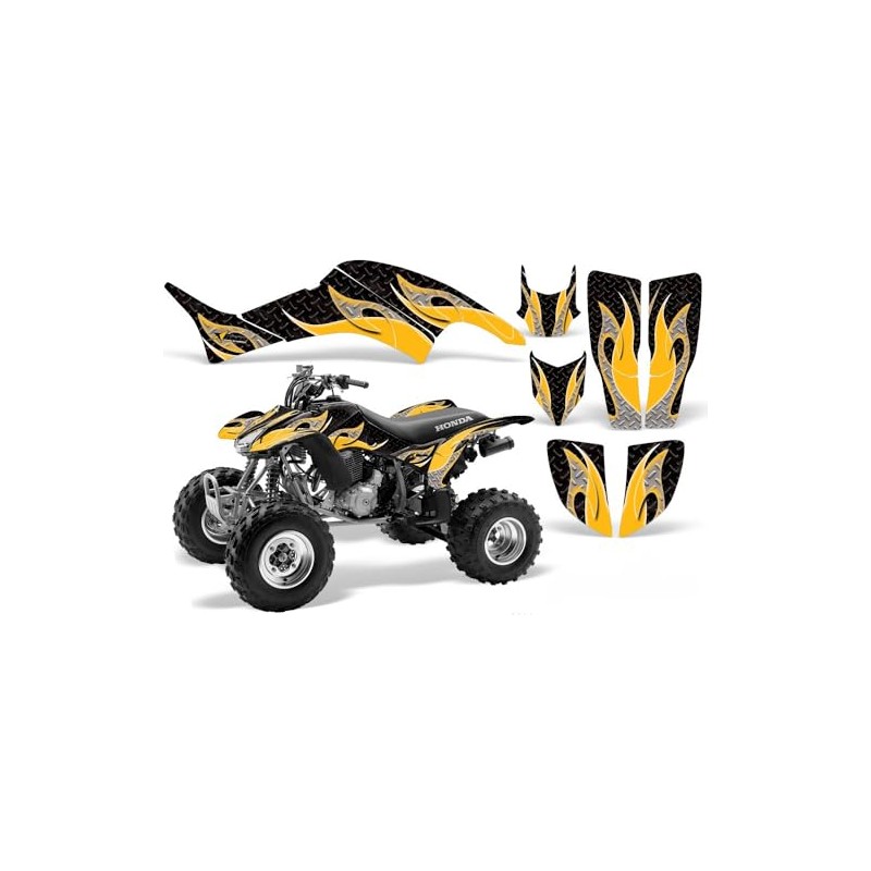 AMR Racing ATV Graphics Kit: Quad Stickers for Honda TRX 400EX (1999-2007), Featuring Tribal Flame Design in Black & Yellow, Transform Your Ride with New ATV Stickers!