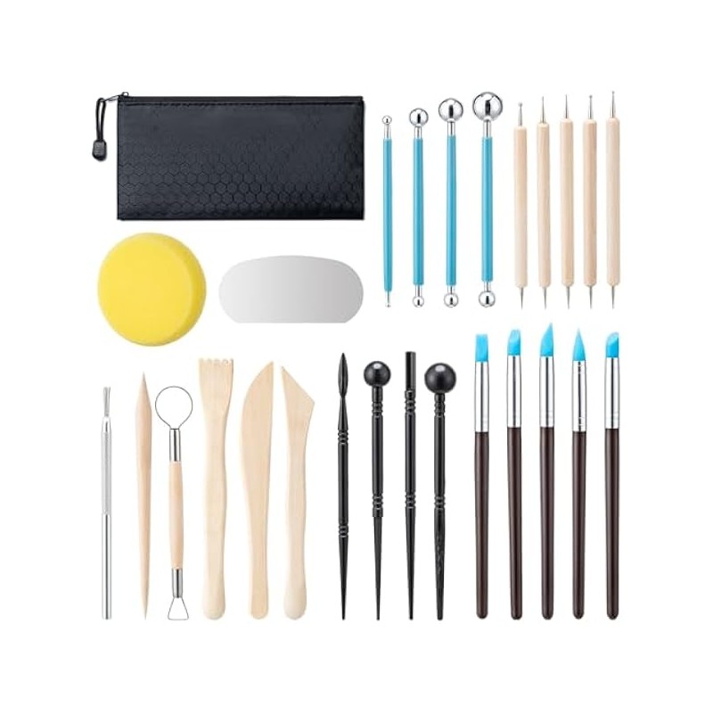 Amrules Clay Tools Kit, 27 PCS Pottery Tools, Practical Polymer Clay Sculpting Tools Kit, Air Dry Clay Tools Set for Kids, Adults, Pottery Craft, Dotting, Carving, Drawing, Molding, Modeling, Shaping