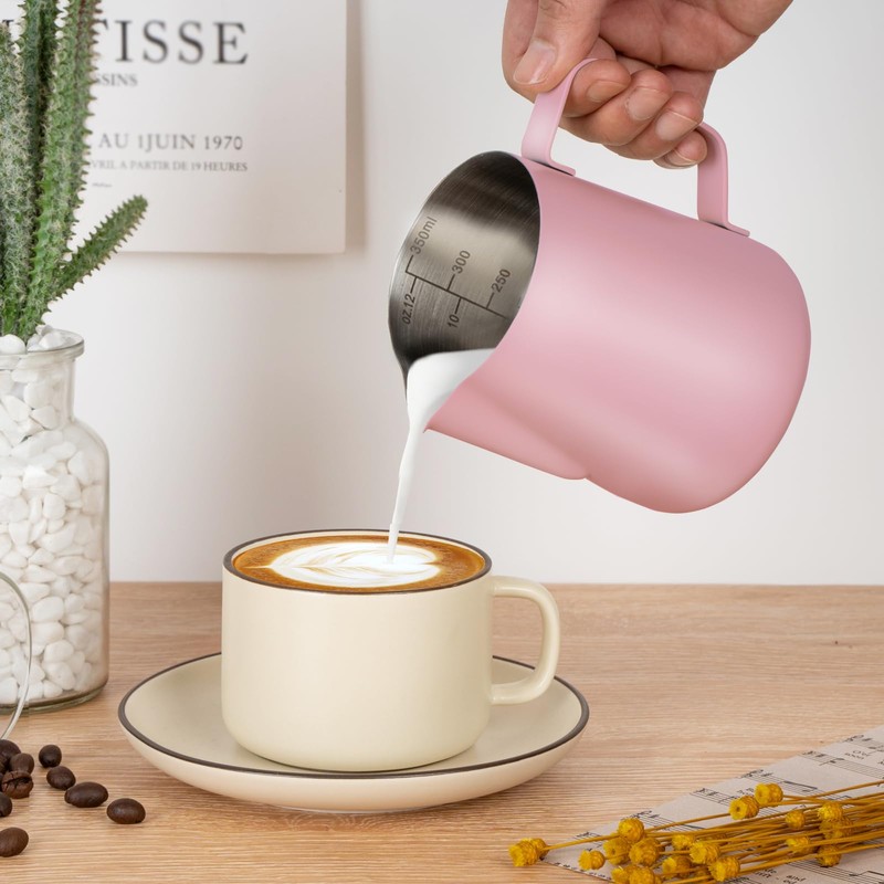 - WIDELY USED: Our practical milk steaming pitcher can be used in different ways and is good for measure liquids, serve milk and make latte art at bar, home, office, cafe. A necessary tool for you to enjoy milk anywhere you like