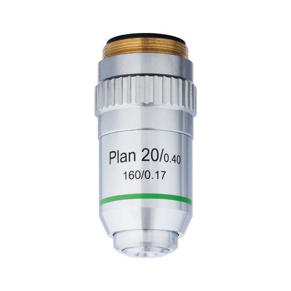 Features & Specifications: \- Magnification: 20X \- NA: .40 \- Optical Working Distance: 1.16mm \- Thread: RMS \- Mechanical Tube Length: 160mm \- Cover Glass Thickness:0.17mm \- Color Correction: achromatic \- Field Correction: plan \- Immersion Medium: none \- Nosecone: spring