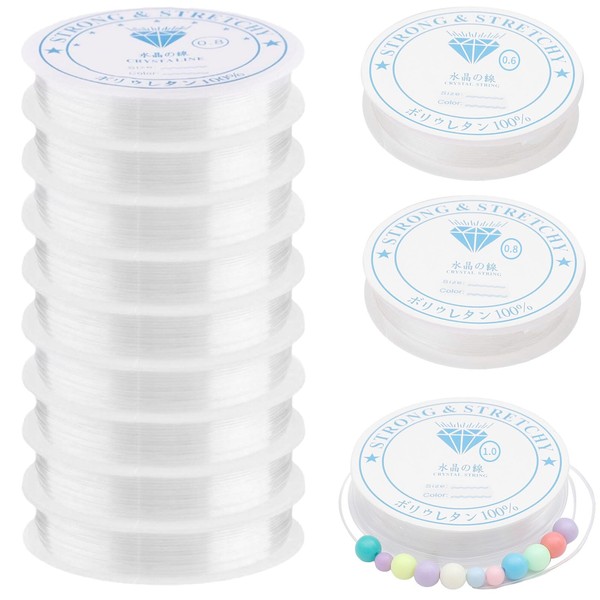 AMSGANK Elastic Jewellery Thread, 9 Spool Elastic Band for Bracelets 0.6 mm 0.8 mm 1.0 mm Transparent Beads Thread Invisible Elastic Jewellery Thread for Beads Jewellery Bracelets DIY Crafts