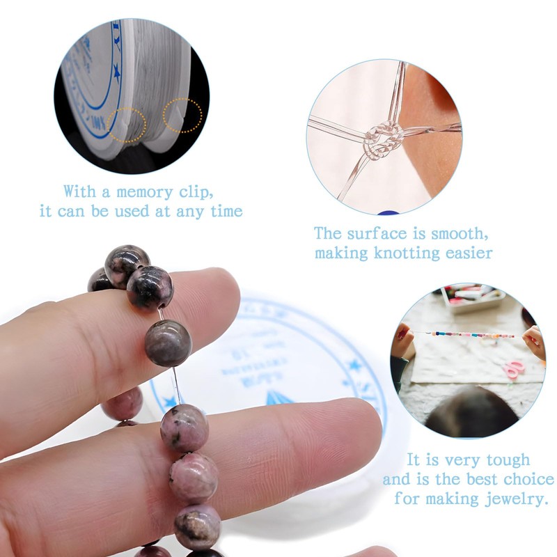- High Quality Materials This elastic jewelry thread is made of elastic plastic rubber with crystal clear appearance, strong for use and looks beautiful. Strong elastic, strong and tear-resistant, easy to cut with tools