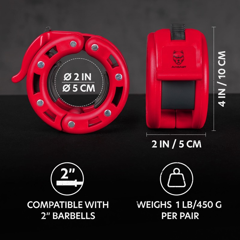 - Quick Release Barbell Collars: Designed for easy attachment and removal, these barbell clamps provide a secure grip on your 2-inch Olympic bars, keeping weight plates firmly in place during heavy lifts and high-intensity workouts.