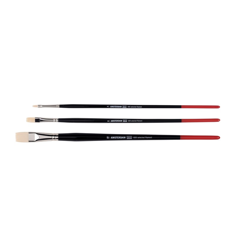 - The synthetic brushes from the Amsterdam 600 series work unusually well with thicker colours such as acrylic and oil paints. The hair is mounted on a long, ergonomic style with a sturdy, nickel-plated brass ferrule