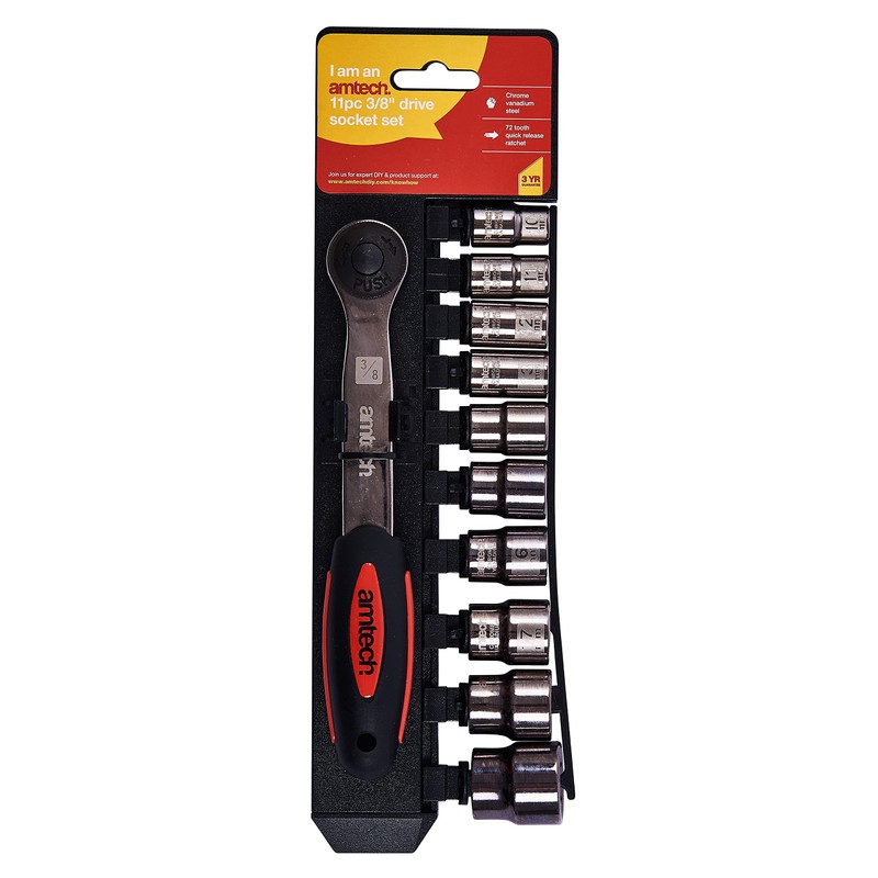 - DURABLE: This 11 piece 3/8" socket set is made from strong, chrome vanadium steel for durability