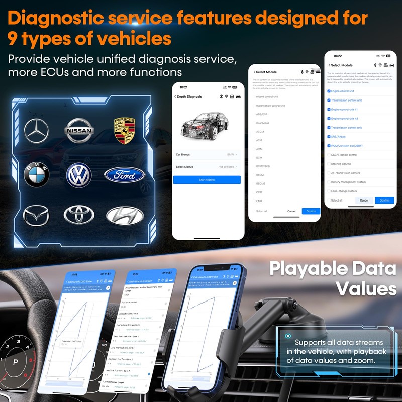 AMTIFO Bluetooth OBD2 Scanner Wireless - Auto-Connect, Clear Engine Codes, Live Data & Performance Monitoring, Works with iOS/Android - Vehicle Diagnostic Tool for Car Owners & DIY Enthusiasts