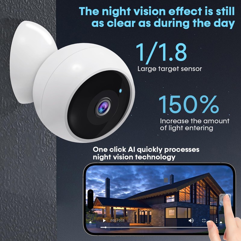 - State-of-the-Art Imaging Tech:Smart outdoor cameras for home security interiors is equipped with an anti-glare feature to prevent the installation location from being disturbed by direct sunlight or artificial lighting, reducing halos and reflections and maintaining image clarity.Featuring a wide dynamic range (HDR), the camera is able to capture rich details in environments with strong contrasts between light and dark. 2 PCS wireless outdoor camera's built-in optical stabilization system (OIS) auto corrects image blurring due to environmental vibrations.We recommend that the camera be mounted no more than 33 feet from the router.