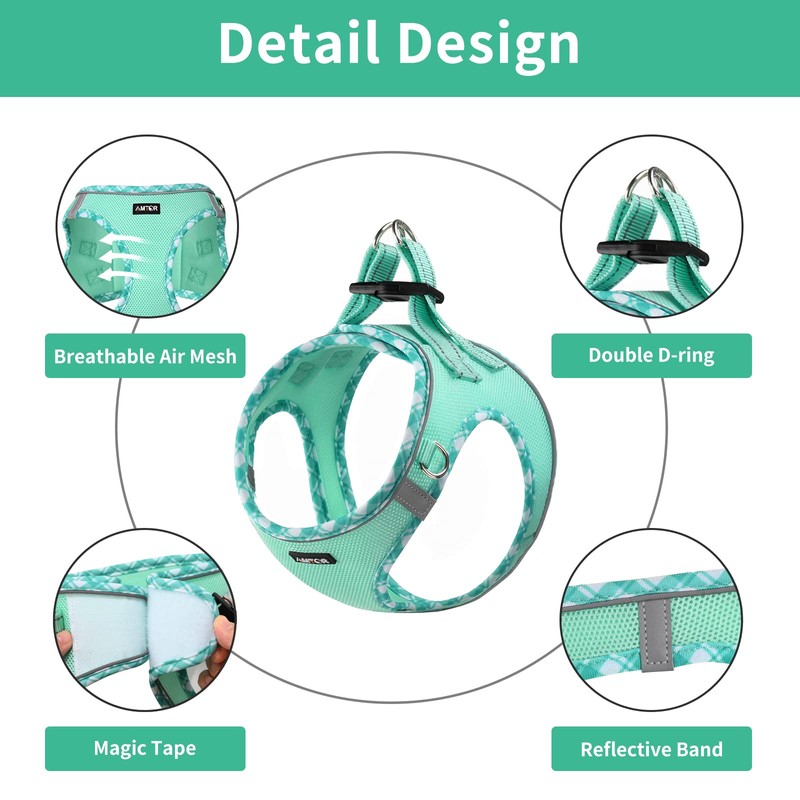 - Breathable Air Mesh - The dog harness is made with soft mesh fabric,which is high-density, soft and comfortable, and can prevent chewing or tearing.The dog harness suitable for extra-small/small medium large dogs and cats