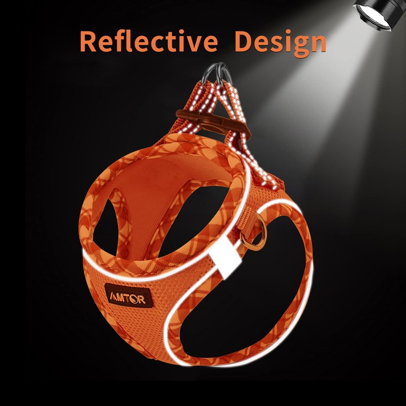 AMTOR Small Dog Harness with Leash Set, No Escape Easy Walk Puppy Harnesses for Training Walking, Step-in Reflective Soft Dogs Vest for XS S Medium Extra-Small Large Sized Dog(XL Size,Orange/White)