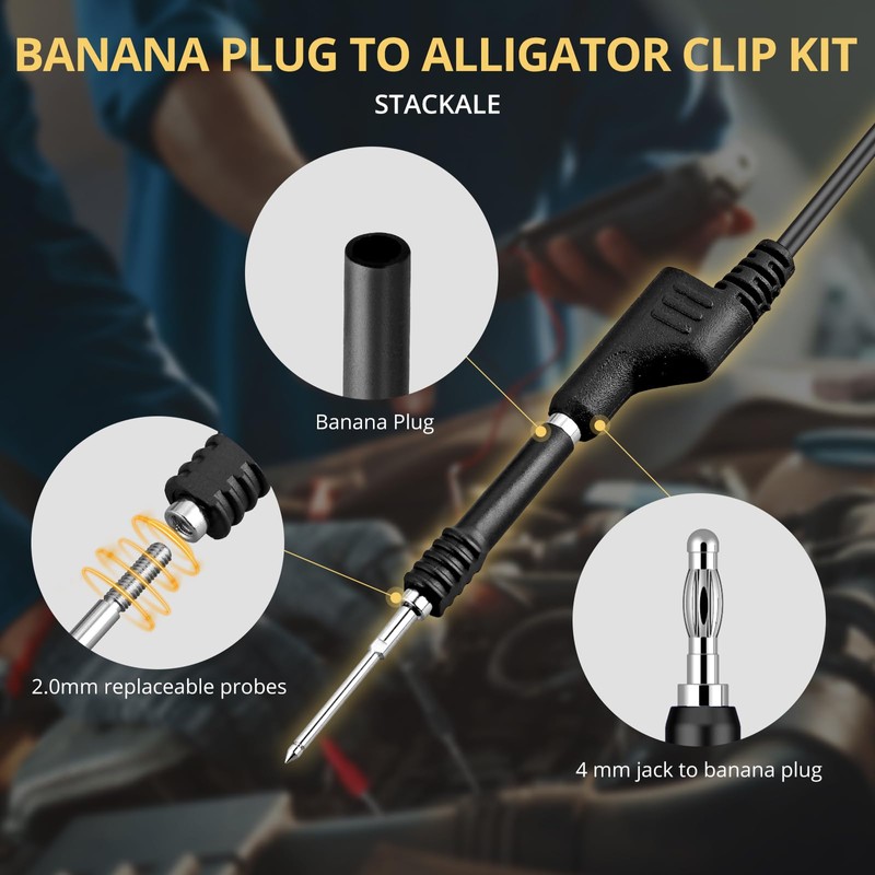 • 【Stackable Banana Plug to Alligator Clip】Stackable design allow for multiple banana plugs to be inserted into same banana socket. This feature enables you to switch to a different style of lead without the hassle of constant unplugging and re-plugging