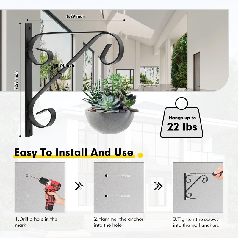 - [Easy of Use] You only need to use screws and plastic anchors included to attach the bracket to the solid wall or column. Each holder has 3 curved hooks to hang your decorations.You can also mount it on fence, door for indoor or outdoor events in living room, garden, garage or balcony.