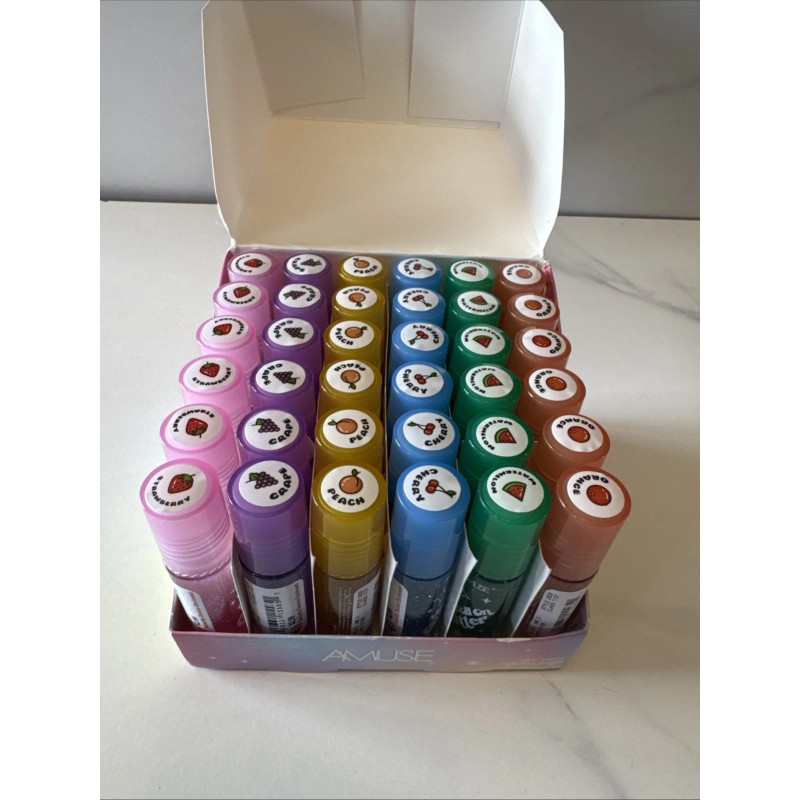 New wholesale lot 36 assorted scented roll on face and body glitter Grape Peach Strawberry Cherry Watermelon Orange 7g./0.25oz. each. 6 of each flavor/color. New in display box. Shipped free, usually same day