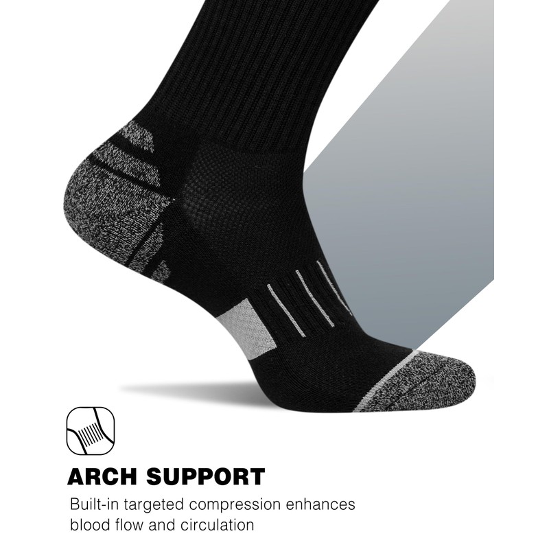 - High Ankle Design with Arch Support: The high ankle design of our black crew socks provides effective protection for your ankles . The arch support helps reduce foot fatigue by providing better support to your feet.